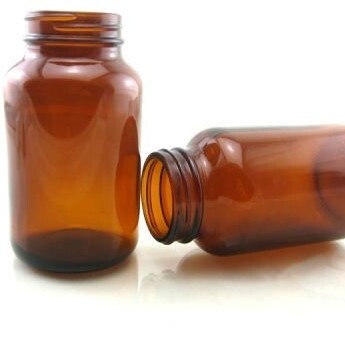 Frasco ámbar boca ancha sin tapón.