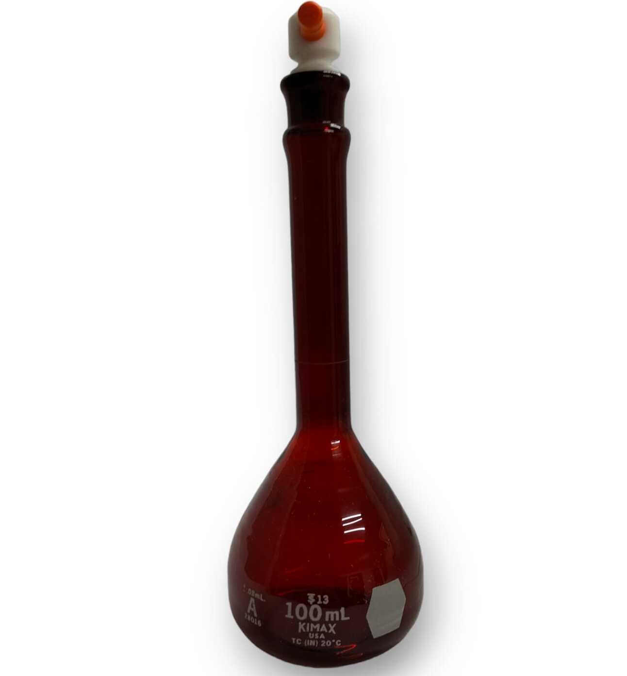 Fabricado en vidrio de borosilicato con bajo contenido de extractables; conforme a USP Tipo I y ASTM E438, Tipo I, Clase A; posteriormente procesado con tratamiento RAY-SORB. Diseñado conforme especificación ASTM E288, Clase A. Tolerancia de ± 0.08 ml. Altura aproximada de 180 mm (con tapón). Tapón de PTFE (13), mango con código de color naranja. Área para identificación en color blanco.